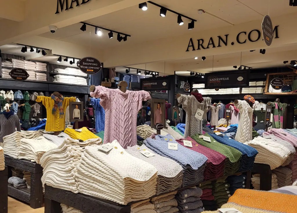 Blarney Woollen Mills – Renowned for their authentic Aran knitwear and Irish crafts. Blarney, Co. Cork